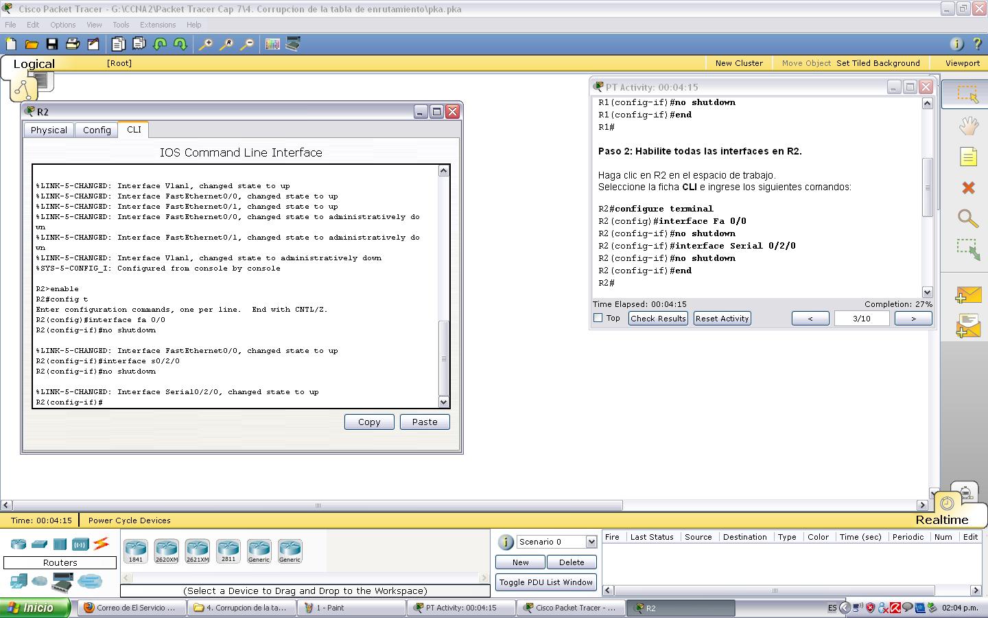 Esta actividad se centra en la manera en que los Proveedores de servicios de Internet utilizan las rutas estáticas para comunicarse con sus clientes y en cómo los clientes utilizan la ruta predeterminada para comunicarse con su proveedor de servicio. La práctica de laboratorio muestra cómo el router de borde genera una ruta predeterminada y la propaga a todos los demás routers del dominio de enrutamiento. Luego de que la red se ha establecido, se agrega un nuevo router R4 a la red, pero este router cuenta con una ruta predeterminada errónea que no apunta al ISP. Podrá ver las entradas de la tabla de enrutamiento para determinar el resultado que esto genera en su red y examinar las respuestas a los ping. Inicialmente, todas las interfaces se configuran con el direccionamiento correcto. Se configura RIP como protocolo de enrutamiento.